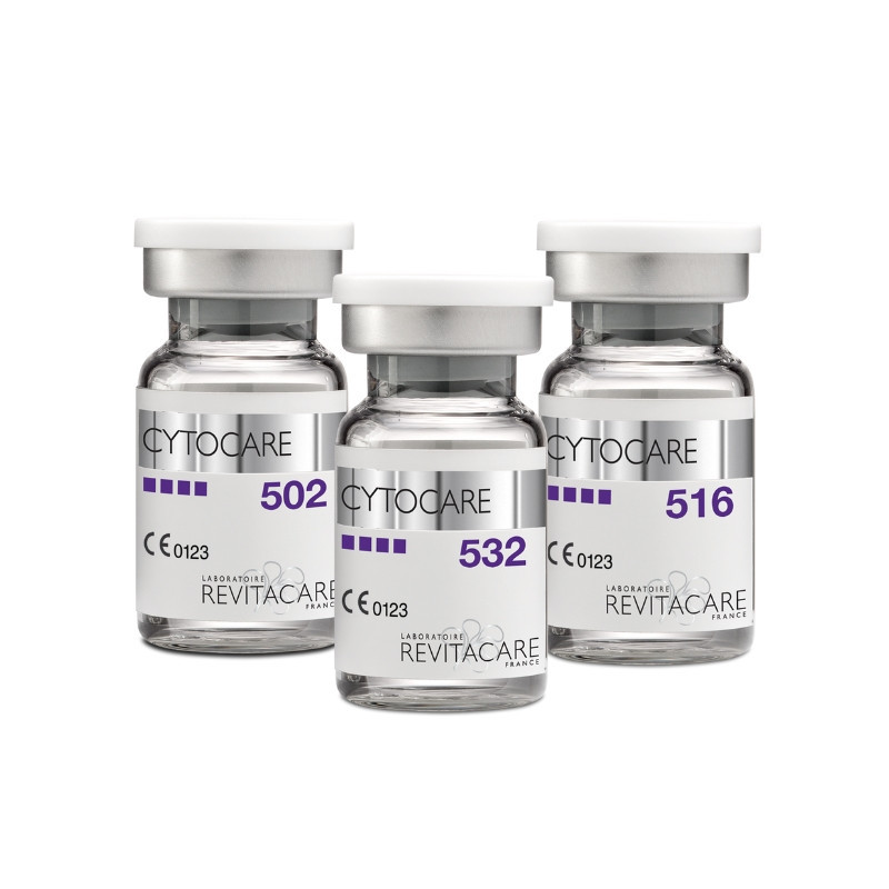 CYTOCARE is a range of resorbable implant composed of Hyaluronic acid + Rejuvenating Complex, injectable by micro-injections into superficial dermis and medium dermis of peri-orbital and perioral lines (vertical lip lines).